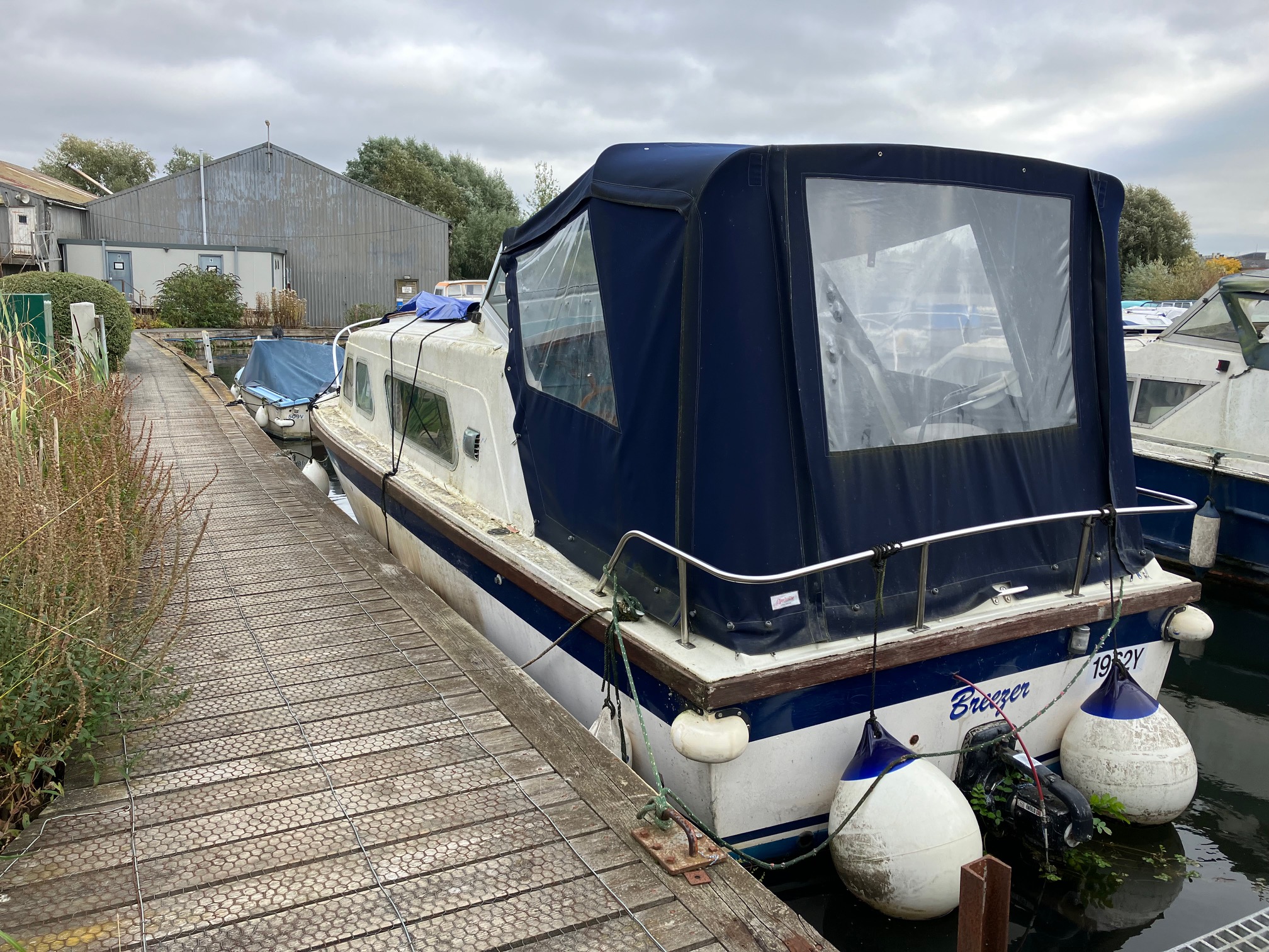 Senior 23 with Perkins diesel engine on an Enfield outdrive.  This is a ‘soft top’ so low airdraft for bridges. New starter battery 2025, new canopy 2024, safety certificate to June 2028.  The engine starts & runs with no problems.